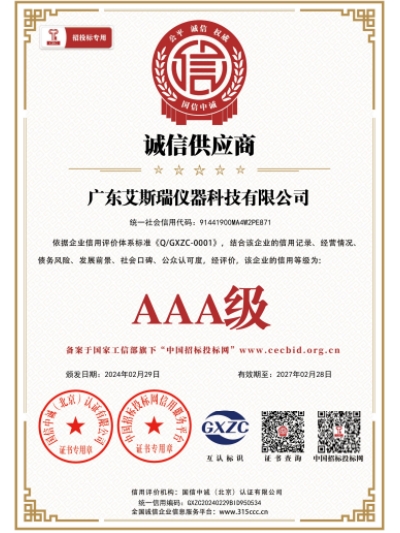 廣東艾斯瑞儀器科技有限公司 廣東艾斯瑞儀器科技有限公司在東莞道滘投產,廠房面積38000平方,是一家擁有著多年試驗機研發、設計、生產的廠家,經驗雄厚并與國內外知名企業合作,產品遠銷世界多個國家和地區。 產品符合標準:ISO、AATCC、ASTM、DIN、EN、GB、BS、JIS、ANSI、UL、TAPPI、IEC、VDE….均可用,產品廣泛適用于:科研單位、質檢機構、大專院校以及電子電器、涂料、箱包、膠粘、手機、紡織、玩具、橡膠、塑料、金屬、電線電纜、制鞋、皮革、包裝、建材、石化、航空…等產業,為材料開發、物性試驗、教學研究、品質管理、進料檢驗等必備。 艾斯瑞儀器將建立起遍布亞、美、歐三大洲的專業研發網絡,建立健全創新機制及知識產權管理平臺,為公司發展奠定基礎,從而成為國內企業中產品馳騁全球的先導者。 公司自成立以來堅決以品質為核心,精美外觀設計為中心,以及認真務實的工作精神,更好服務于廣大客戶并贏得良好的口碑。我們將一如既往,堅持以“誠信經營”為本,“品質至上”為主,服務至上為宗旨,用創新的思路和技術設計產品,保證優良的品質,品質管理、進料檢驗等必備。